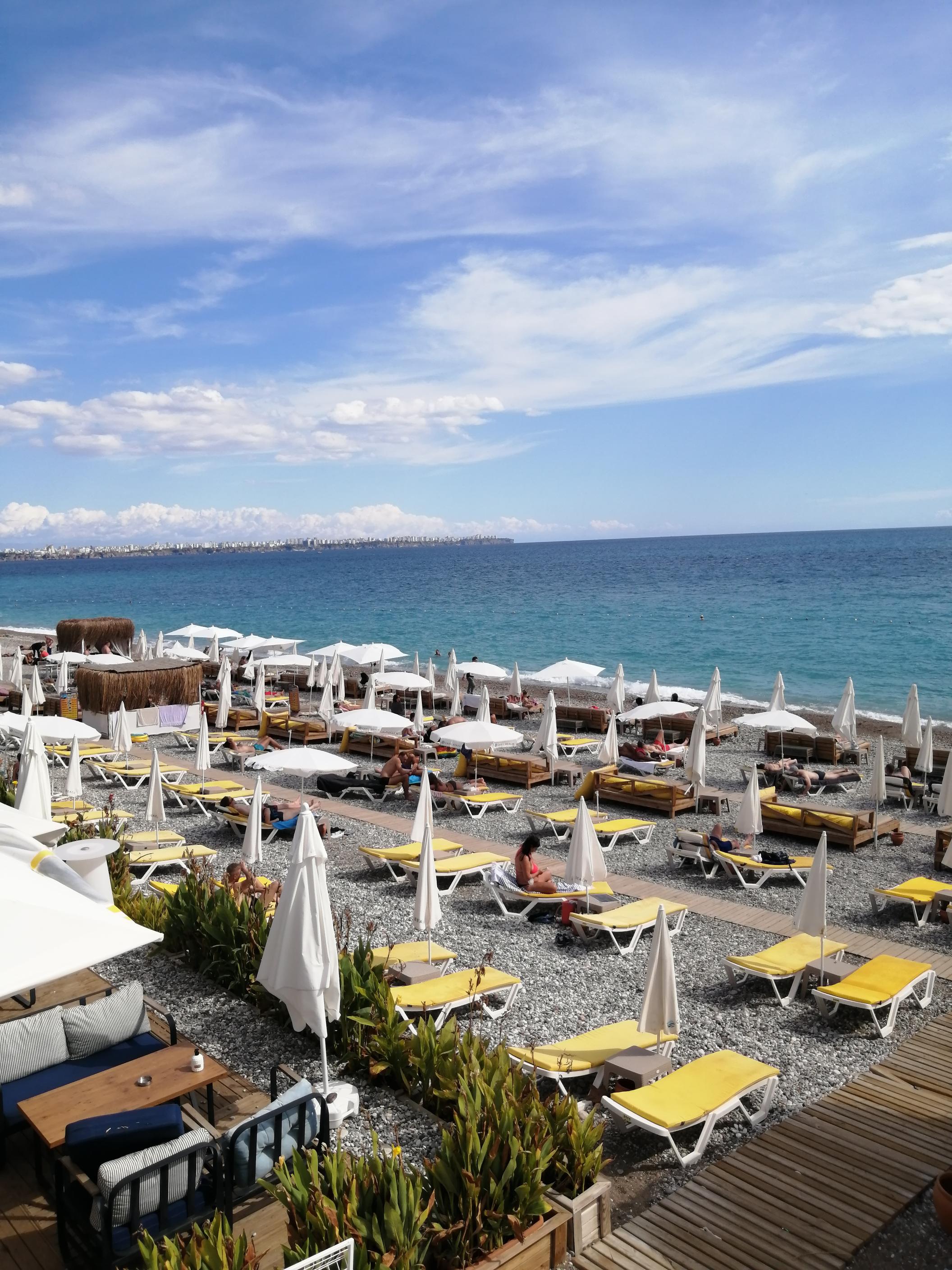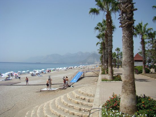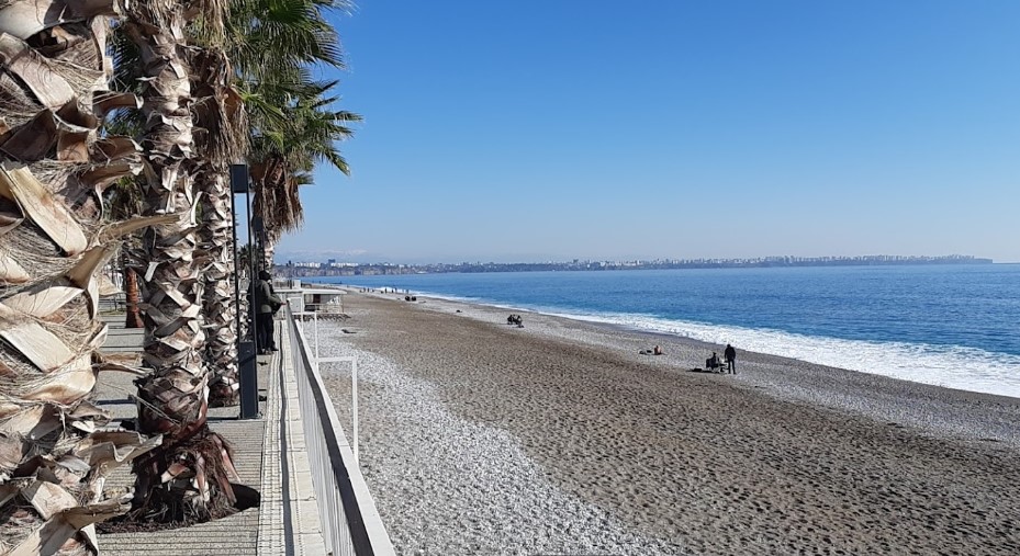 Plaj, şehrin batı kısmında falezlerin bittiği noktadan başlayarak, Antalya limanına kadar 4-5 km boyunca uzanmaktadır. Antalya - Kemer karayolu üzerinde bulunur ve yerli-yabancı turistlerin uğrak noktasıdır.